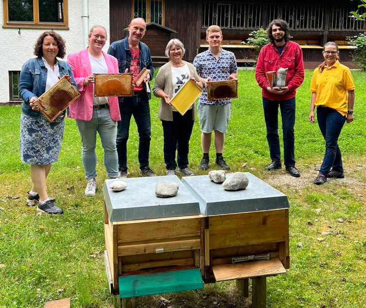 Die Parlamentspause nutzte die imkereipolitische Sprecherin der BayernSPD-Landtagsfraktion, Ruth Müller, MdL zu einem Besuch auf dem Bienenhof in Aham. „Das letzte Mal war ich bei Eurem Bienenmarkt zu Besuch“, erinnerte sich Müller an das gesellige Treiben auf dem Lehrbienenstand. Dieses Mal war sie in Begleitung der örtlichen SPD und mit Landtagskandidatin Sea Altmann bei der stellvertretenden Kreisvorsitzenden Josefa Fill zu Gast, um sich über die Arbeit der Ehrenamtlichen und das Imkerjahr zu erkundigen. Josefa Fill führte die Gäste durch den Lehrbienenstand und betonte, dass die Grundidee der Anlage ist „die Bienen dem Menschen näher zu bringen“. Wir betreiben den Lehrbienenstand am Bienenhof Aham und bieten dort ein umfangreiches Programm mit Lehrgängen und Schulungen für Alt- und Neuimker. Müller war es auch ein Anliegen, dem ehrenamtlichen Vorstand für die Arbeit zu danken: „Sie leisten einen wertvollen Beitrag, wenn es darum geht, Wissen an die nächste Imkergeneration weiterzugeben und die aktuellen Themen zu vermitteln“.